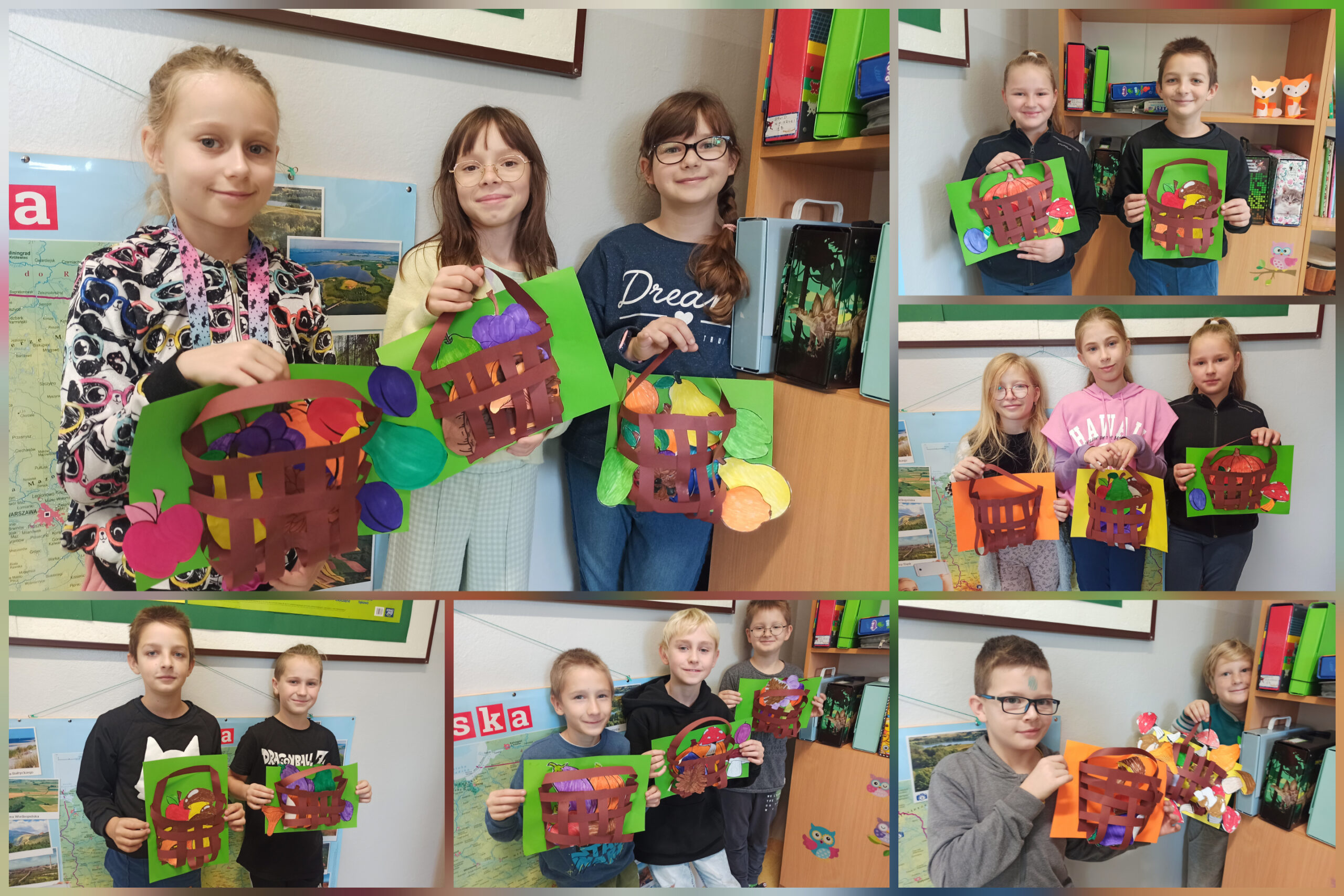 Hejka! Tutaj 3B! Skoro jesień już w rozkwicie, postanowiliśmy stworzyć kompozycje z jej owoców. Póki co, jedynie z papieru, ale od czego ma się wyobraźnię, prawda? Na te prawdziwe przyjdzie …