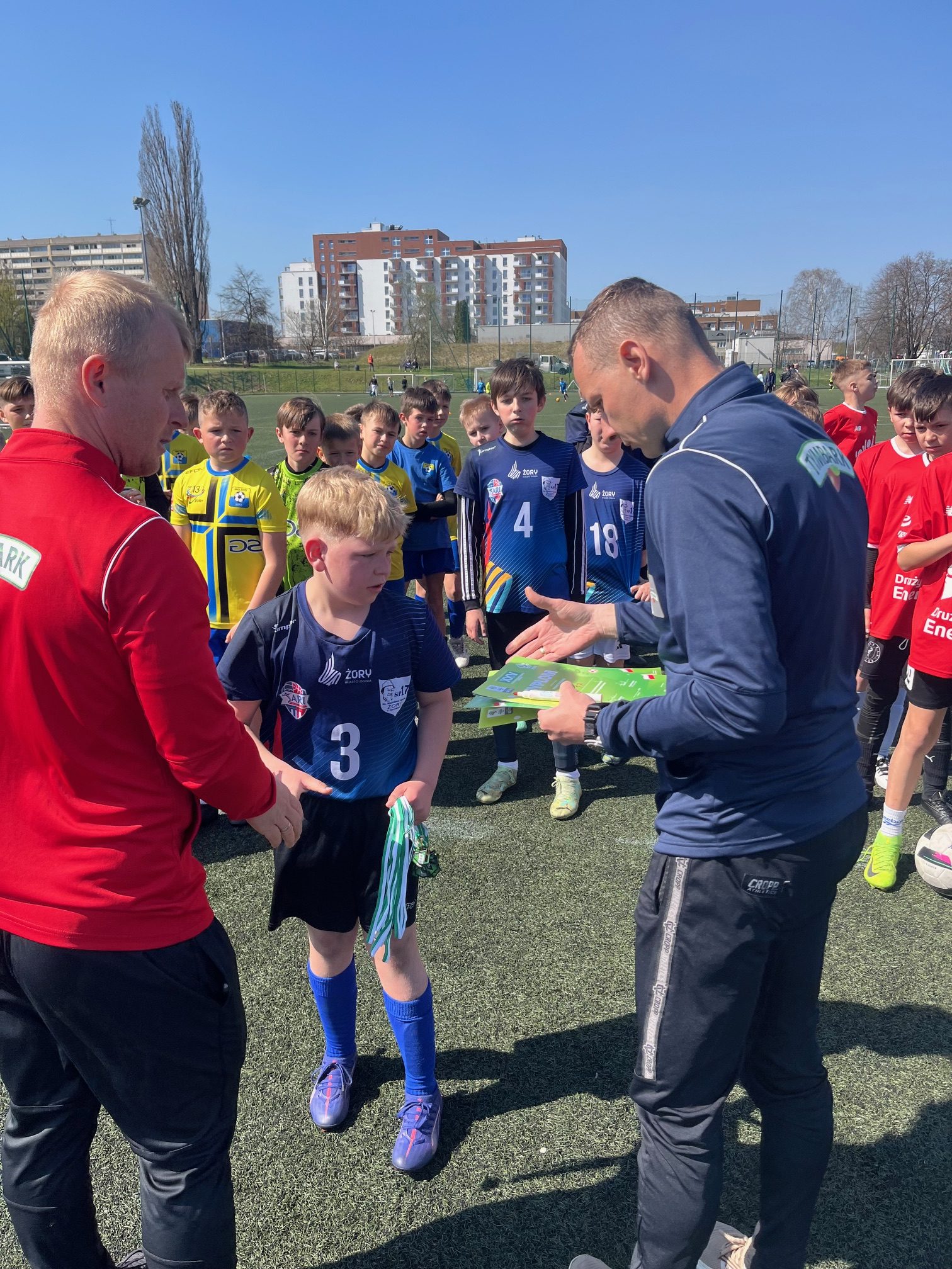 W dniu 03.04.2025r. na kompleksie boisk przy Szkole Podstawowej nr13 w Żorach nasza szkolna drużyna wzięła udział w zmaganiach piłkarskich Ogólnopolskiej Imprezy o Puchar Tymbarku. W tegorocznej edycji do rywalizacji na poziomie powiatu zgłosiło się 12 drużyn. Po bardzo wyrównanej fazie grupowej Brygada Ligonia awansowała do fazy finałowej. Prawdziwe emocje jednak dopiero przyszły najpierw w meczu półfinałowym, gdzie po zaciętym meczu przegrywamy 3:2 z późniejszym zwycięzcą turnieju reprezentującym klasę mistrzostwa sportowego z SP13. Następnie w meczu o 3 miejsce remisujemy z SP16 i stajemy do pojedynku rzutów karnych. Bardziej doświadczeni koledzy niestety wygrywają ten pojedynek i tegoroczną edycję turnieju kończymy na 4 miejscu. Ogromne podziękowania za sportową postawę i godne reprezentowanie szkoły dla Naszych młodych sportowców, którzy wystąpili w składzie: Mateusz Jurzysta, Marcel Matuszewski, Natan Sobór, Filip Małek, Bartosz Kulik, Filip Doliński, Patryk Bola, Dominik Duda. Opiekunowie: Mariola Jankowska i Damian Gabrysiak