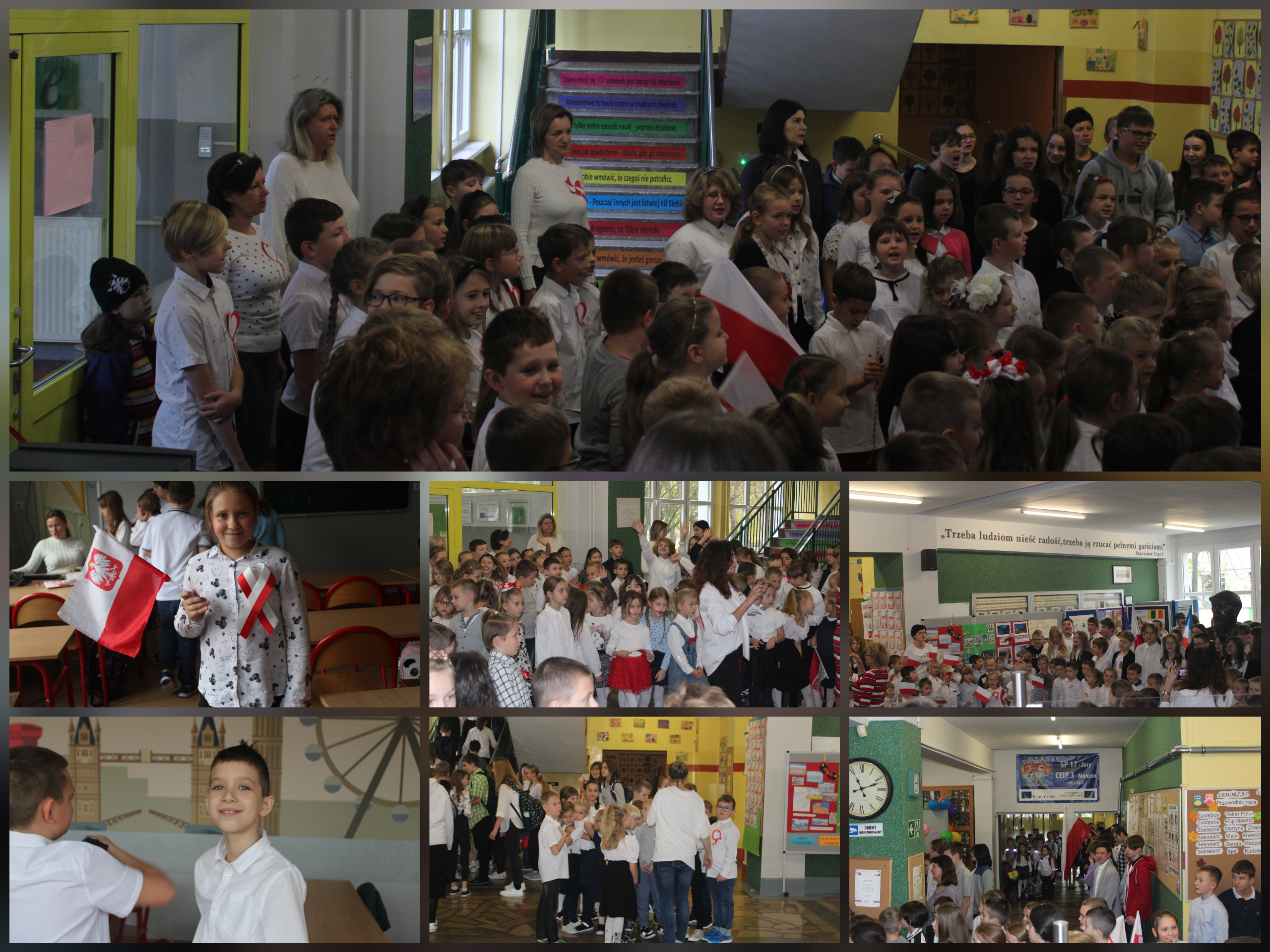 Jak wiecie, jutro ważny dzień dla wszystkich Polaków – Narodowe Święto Niepodległości. Tak jak w ubiegłych latach, dzień przed świętem, o godzinie 11.11 w holu szkoły odśpiewaliśmy nasz hymn narodowy.