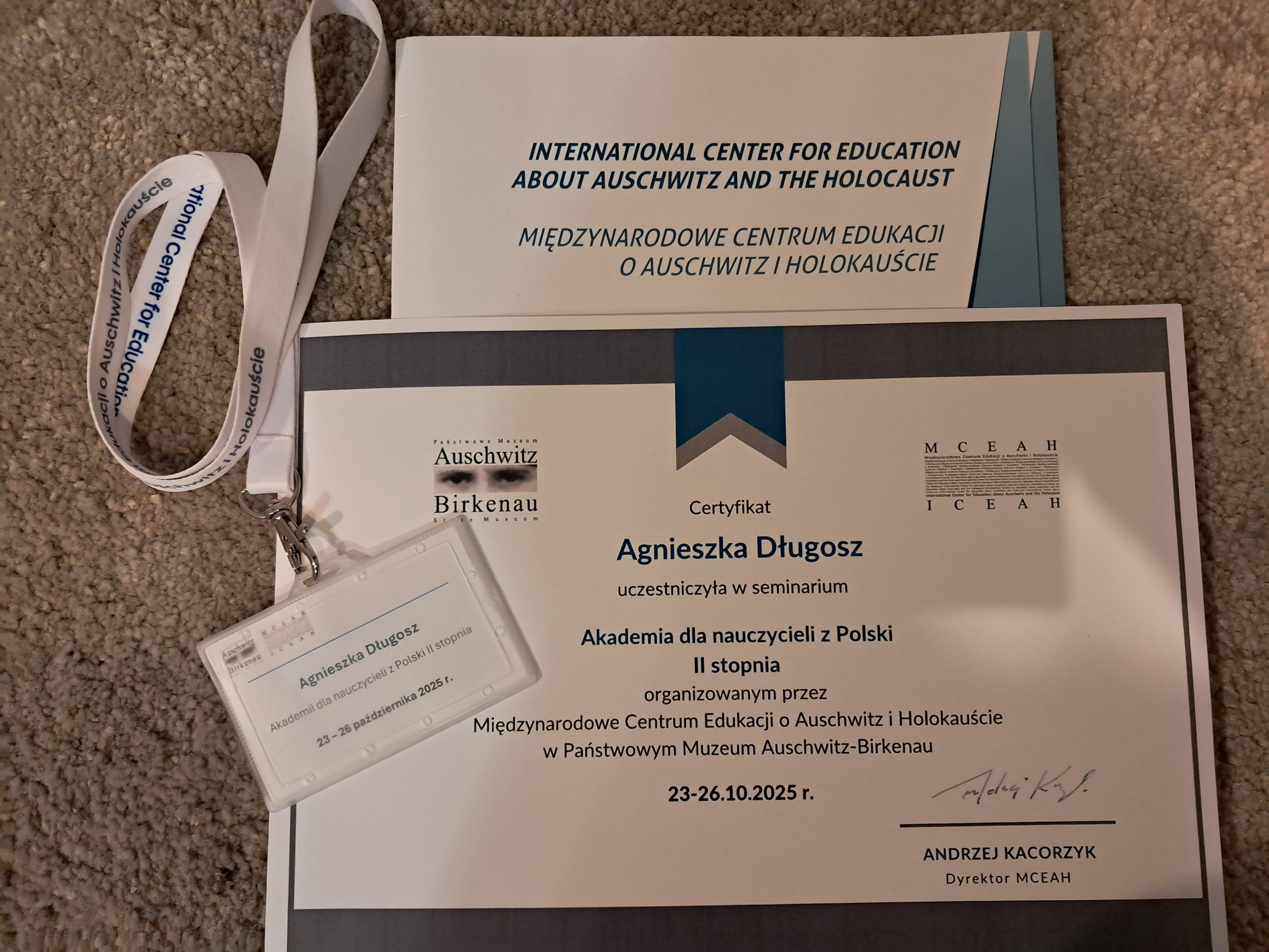 W dniach 23-26 października 2025 r. p. Agnieszka Długosz uczestniczyła w Akademii II stopnia dla nauczycieli z Polski, która została zorganizowana przez Międzynarodowe Centrum Edukacji o Auschwitz i Holokauście.