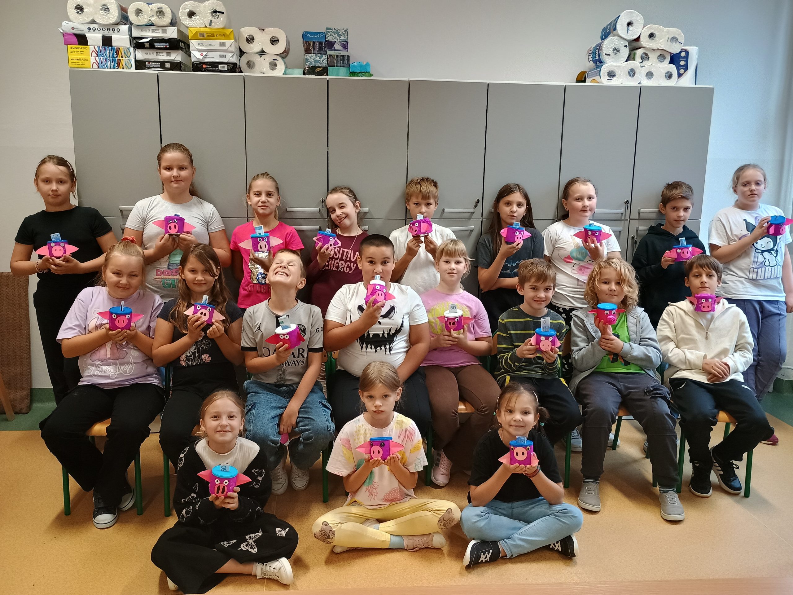 Na zajęciach w klasie 3a rozmawialiśmy na bardzo ważny temat „Co to znaczy umieć gospodarować pieniędzmi?” Dorośli zarabiają pieniądze i mogą za nie kupić wiele rzeczy. Zrozumieliśmy, że można wydać tylko tyle ile się zarobi. Najpierw pieniądze przeznacza się na rzeczy niezbędne a dopiero potem na inne zakupy. Czasem się zdarza, że trzeba sobie czegoś odmówić i na pewne rzeczy poczekać i zaoszczędzić na nie pieniądze. Nasi rodzice dają nam kieszonkowe, które możemy wydawać na co chcemy. Musimy nauczyć się planować wydatki i konsekwentnie zmierzać do wyznaczonego celu. Jak będziemy dorośli ulokujemy pieniądze w banku, a na razie zaczniemy od odkładania drobnych kwot. Zaczęliśmy od własnoręcznego wykonania „świnki – skarbonki”, która będzie pilnowała naszych oszczędności.