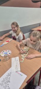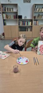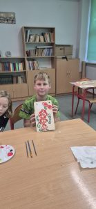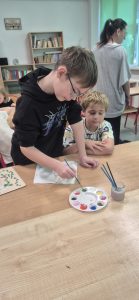 Uczniowie klasy 4b wzięli udział w wyjątkowych warsztatach plastycznych pod hasłem „Patriotyzm na co dzień i od święta”. Podczas zajęć dzieci malowały regionalne wzory kwiatowe na drewnianych deskach, poznawały tradycyjne motywy ludowe i rozwijały swoje zdolności artystyczne.